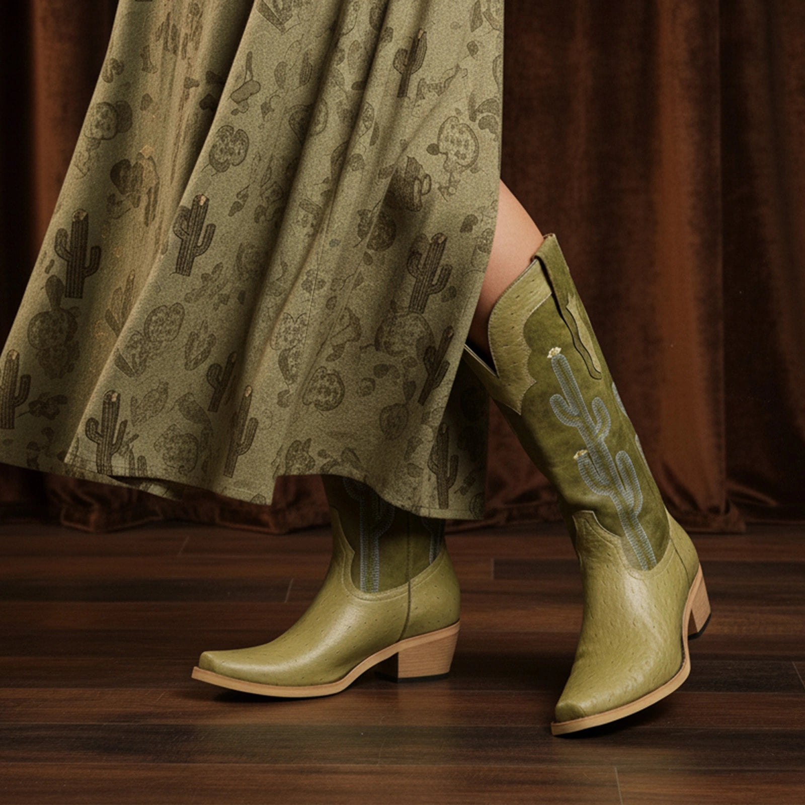 The Laurey - Olive Suede Embroidered Cowgirl Boots with Classic Western Flair