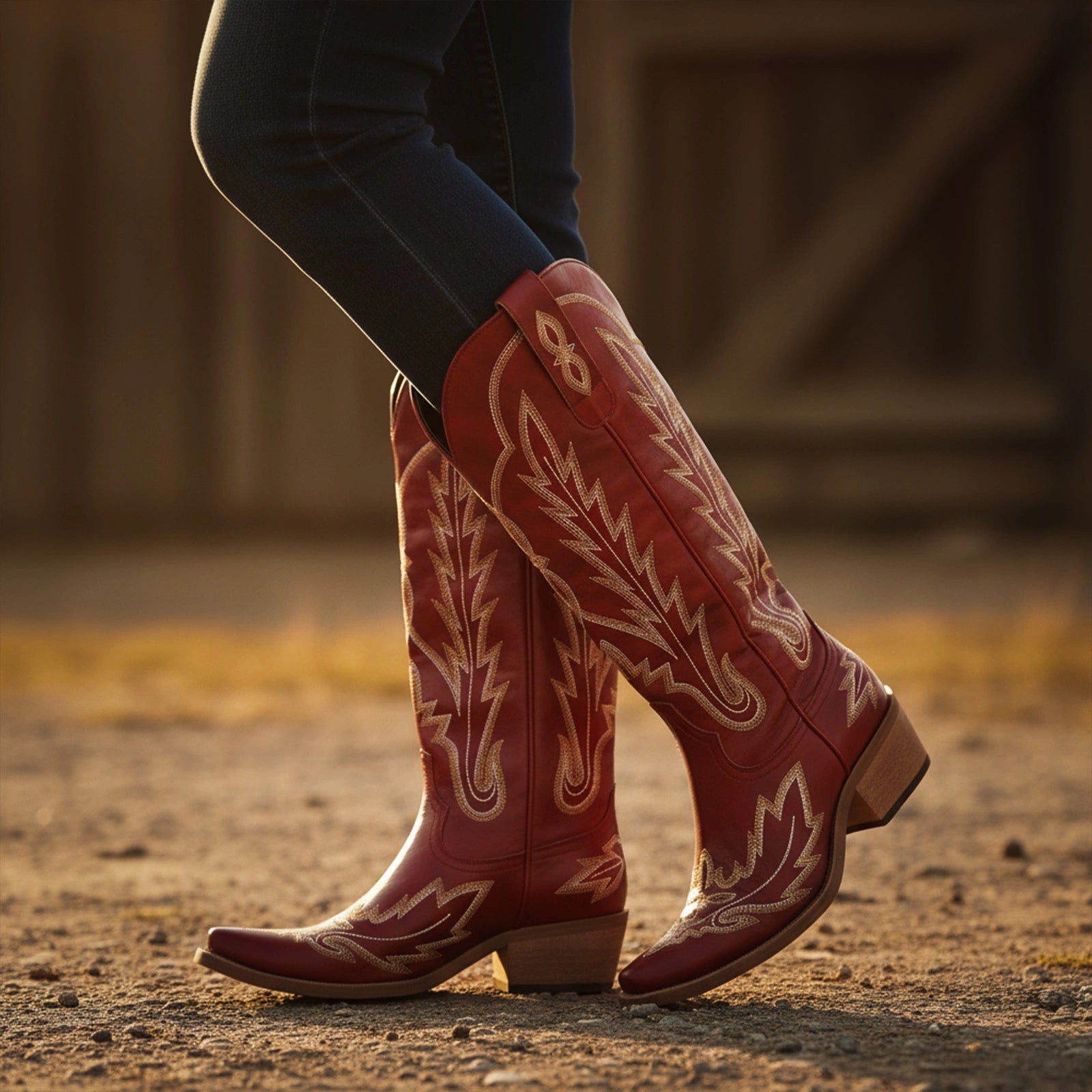 The Laurey - Crimson Embroidered Cowgirl Boots with Classic Western Flair