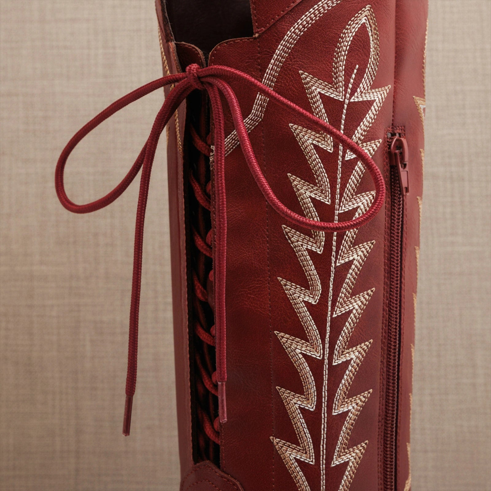 The Laurey - Crimson Embroidered Cowgirl Boots with Classic Western Flair