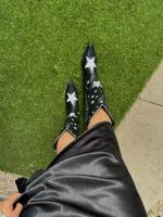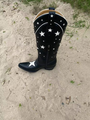 Introducing The Hensley Women's Cowgirl Boots, a perfect blend of style and comfort. Featuring unique star cutouts and a snip toe design, these boots are available in sleek Black synthetic leather or a chic Green bonded leather. The interior boasts a breathable pigskin and mesh lining, ensuring comfort throughout the day. Whether you're dressing up for a night out or adding a touch of western flair to your daily wardrobe, The Hensley boots will make you shine.