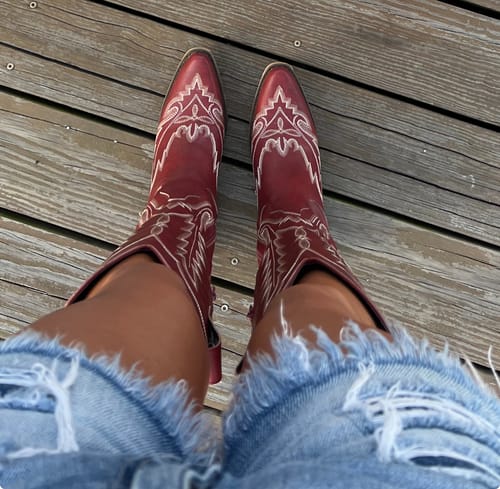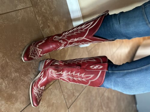 Step into comfort and style with The Rosemary Women's Cowgirl Boots. Featuring delicate floral embroidery and a snip toe design, these boots are both timeless and trendy. The convenient side zipper makes for an easy on/off experience, while the breathable mesh lining ensures all-day comfort. Made from soft bonded leather, these boots are available in multiple colors to match any style.